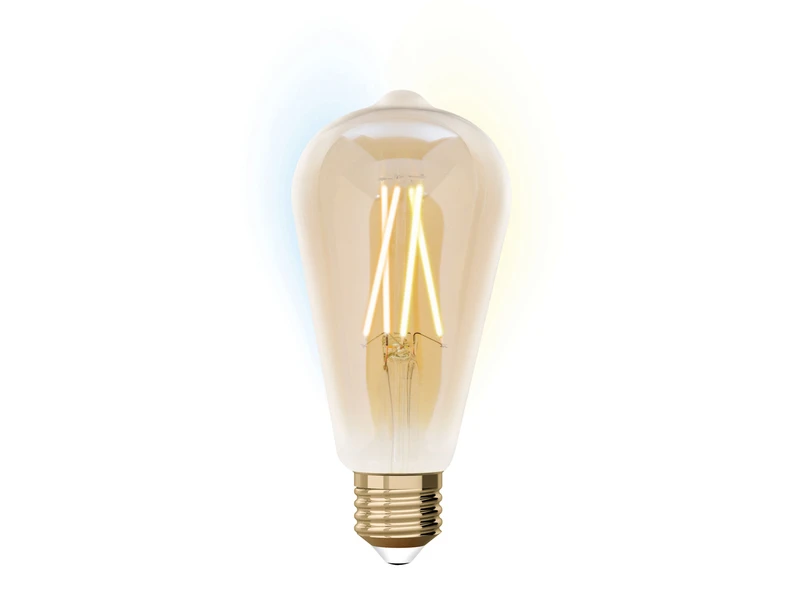 Dieses amberfarbige LED Leuchtmittel in Tropfen Form hat eine Leistung von 8 Watt, 806 Lumen, und verbrietet mit 2200 bis max. 5500 Kelvin ein warmweißes bis tageslichtweißes Licht, welches sie selbst ganz individuell einstellen können. Mit seiner langen Lebensdauer ist es um ein vielfaches sparsamer als ein herkömmliches Leuchtmittel.