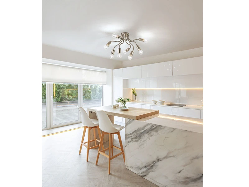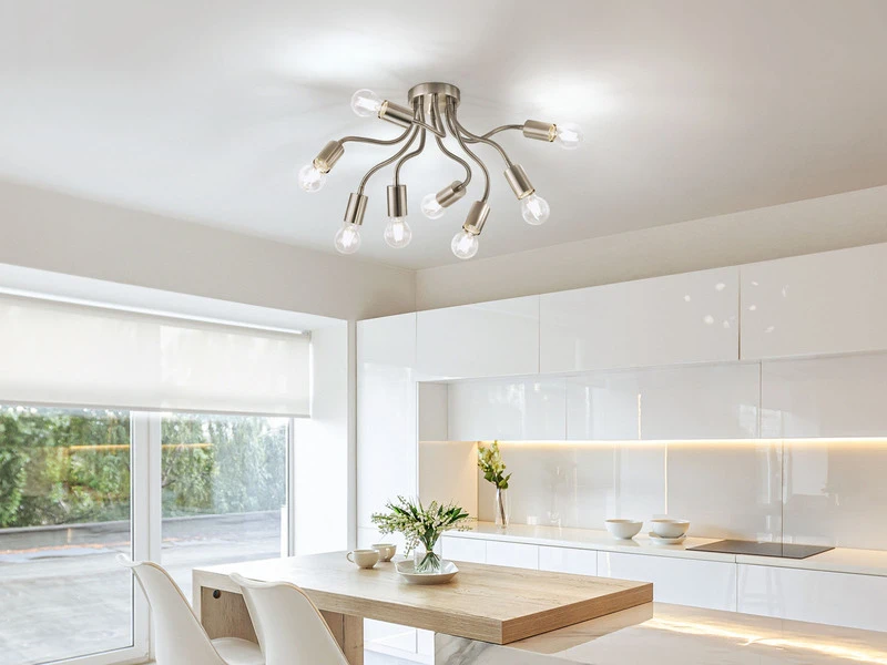 Sie haben einen Flur oder Dielenbereich und möchten diesen mit einer dekorativen Deckenleuchte versehen? Sie suchen eine Wohnzimmerlampe, die in Form einer auffälligen Deckenleuchte ihre Umgebung in ein ganz neues Licht taucht? Auch wenn Sie auf der Suche nach flexiblen Küchenlampen oder Schlafzimmerlampen sind, ist diese Deckenlampe garantiert eine gute Wahl.