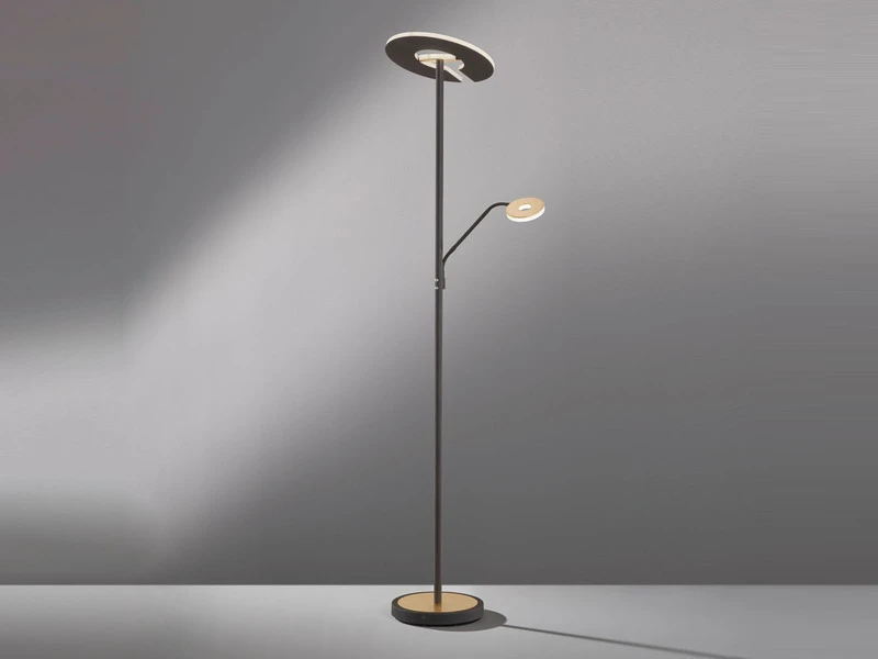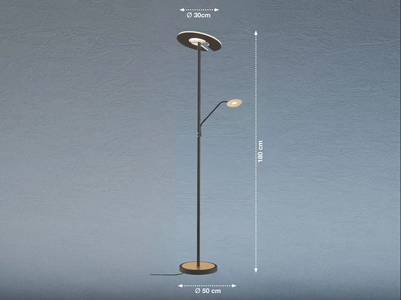 Die fest verbauten LED Module sorgen dabei mit einer Leistung von 37 Watt und 4500 Lumen (Deckenfluter) bzw. 8 Watt und 890 Lumen (Leselampe) für perfekte Lichtverhältnisse.