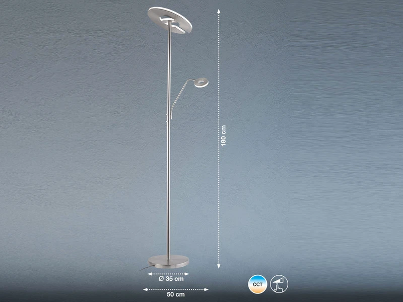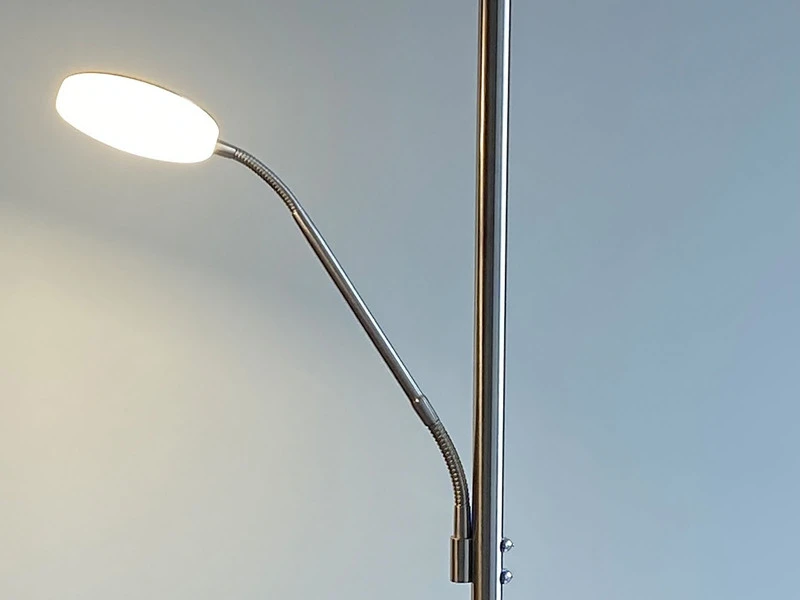 Die fest verbauten LED Module sorgen dabei mit einer Leistung von 37 Watt und 4500 Lumen (Deckenfluter) bzw. 8 Watt und 890 Lumen (Leselampe) für perfekte Lichtverhältnisse.