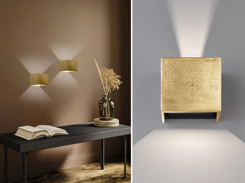 Die Up and Down Wandleuchte der Serie COG vereint einen modernen Look mit dem stilvollen Flair einer besonderen Oberfläche.