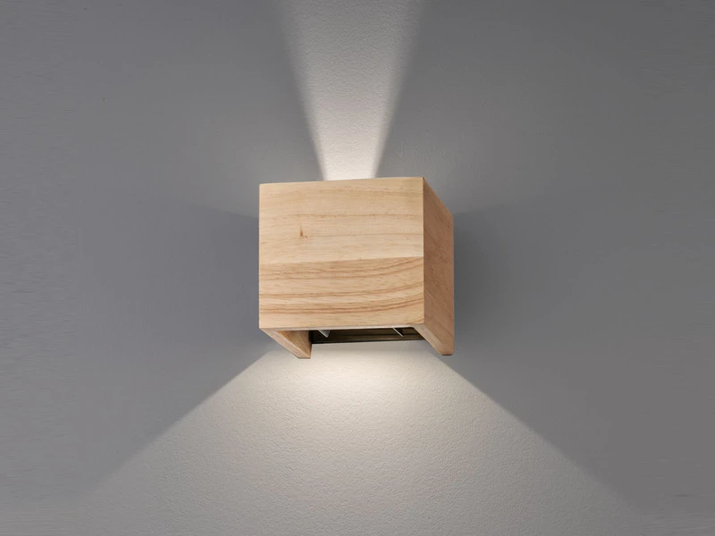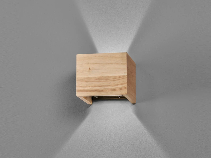 Die Up and Down Wandleuchte der Serie PALOMA vereint einen modernen Look mit dem gemütlichen Flair von Echtholz.