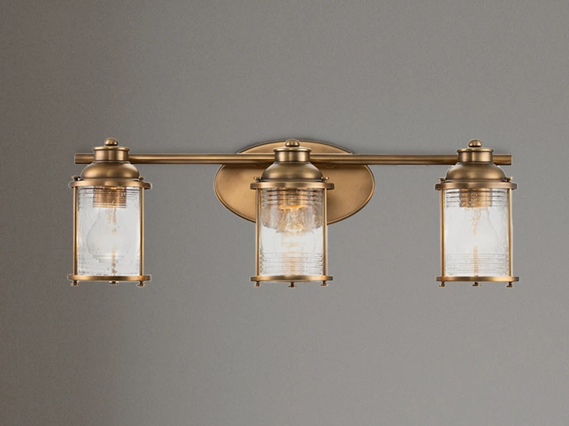 Langweilige Badbeleuchtung war gestern! Diese ausgefallene Innenleuchte im Industrial Style besticht durch ihr ausgefallenes Design und ihre hochwertige Verarbeitung. Der Korpus der Leuchte besteht aus Messing farbigem Stahl, der Lampenschirm aus strukturiertem Glas.