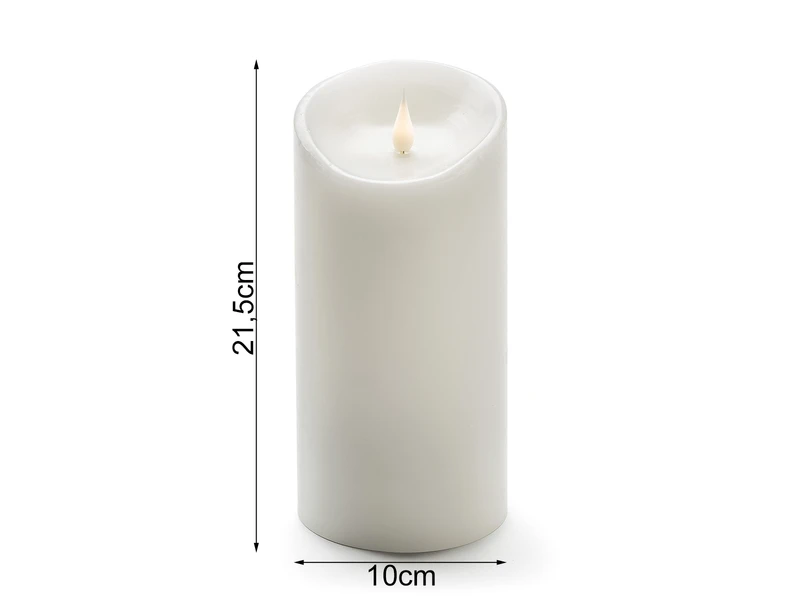 Besonders praktisch ist der integrierte Timer, den Sie wahlweise auf 4 oder 8 Stunden stellen können. So brauchen Sie nicht immer daran denken, die Kerzen auszuschalten. Diese weiße LED Kerze hat einen Durchmesser von 10 cm und eine Höhe von 21,5 cm.