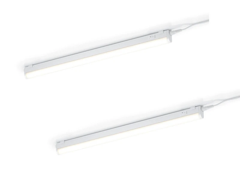 Ausgestattet mit einem jeweils 150cm langen Kabel können die Unterbauleuchten über jede Steckdose in Betrieb genommen werden (230 Volt Direktanschluss). Mit dem im Lieferumfang enthaltenen, 15cm langen Zwischenstecker können sie die beiden Lichtleisten bei Bedarf miteinander verbinden und in Reihe schalten.