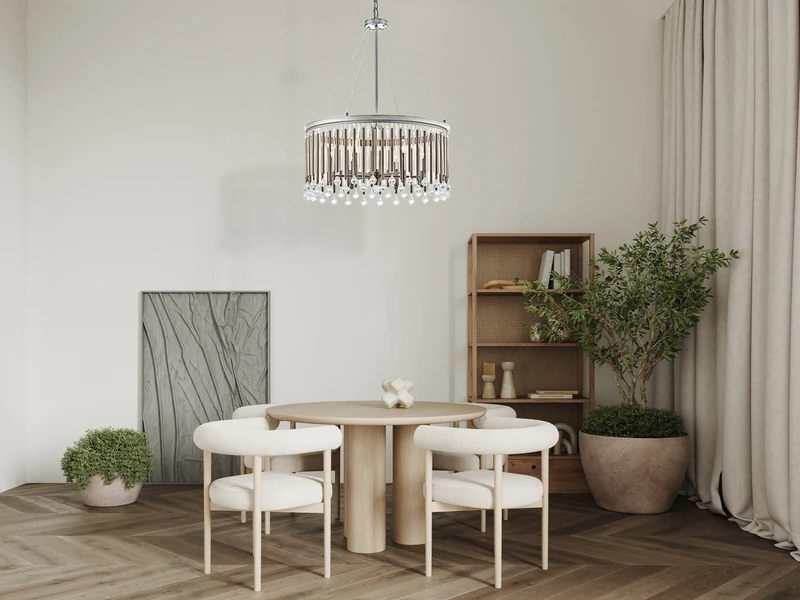 Der Lüster hat einen Durchmesser von 61,6cm und kann in der Höhe von 94cm bis 269cm eingestellt werden und ist somit perfekt geeignet für Räume mit hohen Decken und größere Einsatzbereiche.