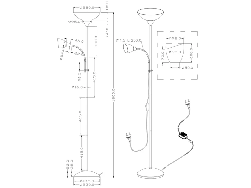 Ausgestattet mit einer flexiblen Leselampe passt die 180cm hohe Stehleuchte perfekt in eine Leseecke oder auch hinter das Sofa.