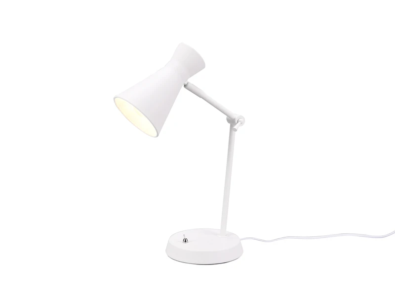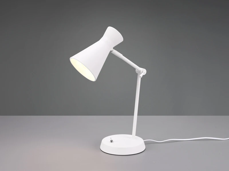 Im minimalistischen und dezenten Design überzeugt die 50cm hohe Leuchte und setzt Ihr Interior-Design gekonnt in Szene. Die LED Tischleuchte ist ideal, um bestimmte Arbeitsbereiche dank des Gelenkarms optimal auszuleuchten. Auch als Nachttischlampe verspricht die schicke Tischlampe ein tolles und effektives Licht. Durch den Schalter am Leuchtenfuß ist ein bequemes ein- und ausschalten gewährleistet.