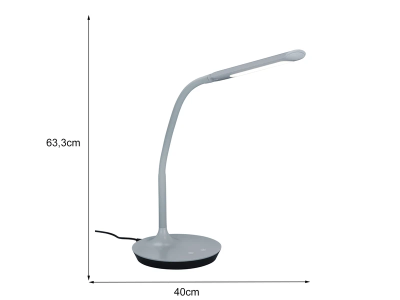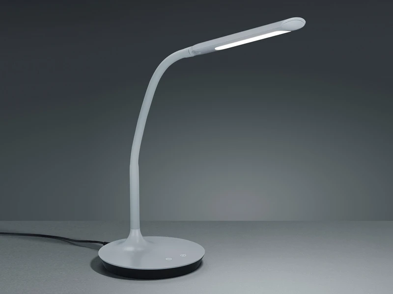 Die ca. 41cm hohe, zeitlos graue Schreibtischleuchte steht in perfekter Harmonie mit ihren leicht geschwungenen Formen. Diese Kombination ist es, die der Arbeitsleuchte ihre stilvolle Optik verleiht.