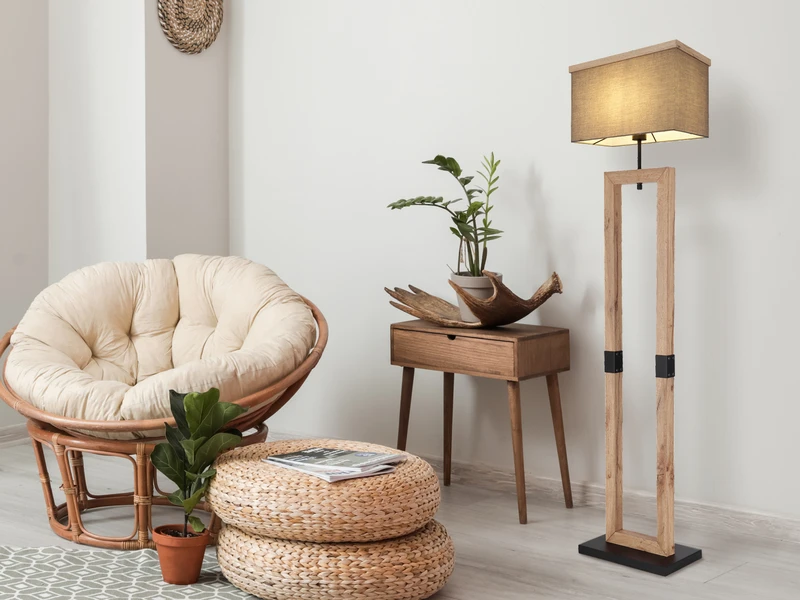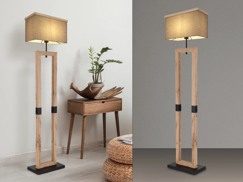 Diese stylische Stehlampe ergänzt mit ihrem schlichten Design jeden Wohn- und Schlafraum perfekt und eignet sich besonders für moderne Wohnstile mit Skadinavischem Charakter oder minimalistische Ambiente. Die Innenlampe lässt sich prima in verschiedene Einrichtungsstile integrieren und ist dank dem angesagten Materialmix aus anthrazitfarbigem Stoff und MDF in Holzoptik schon im Hellen ein wahrer Hingucker.