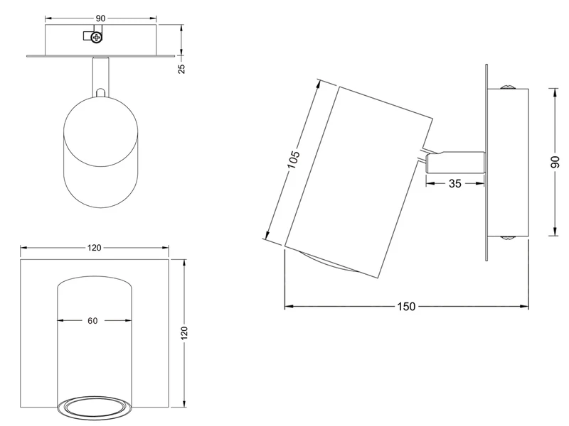 Der Wand- und Deckenstrahler ist mit einer GU10 Fassung ausgestattet und wird inklusive eines dimmbaren LED Leuchtmittel mit 5 Watt und 400 Lumen in warmweiß geliefert.