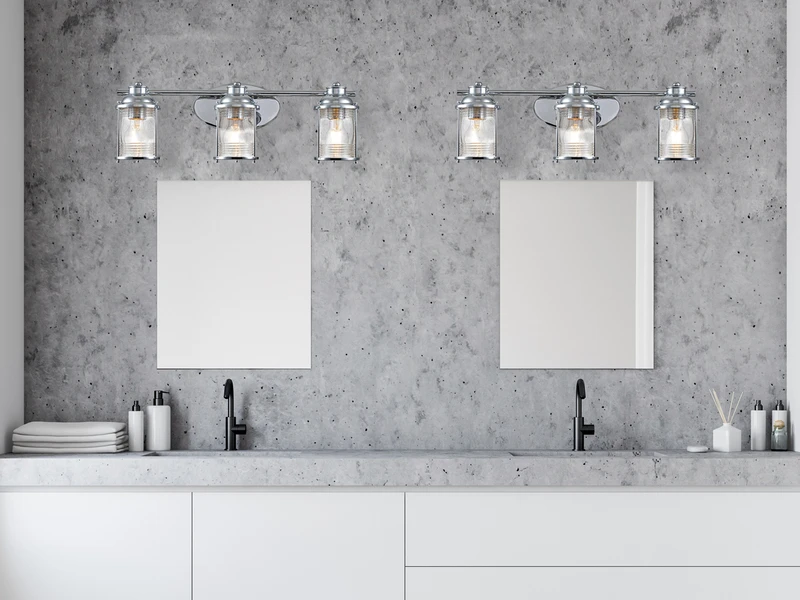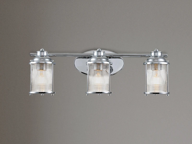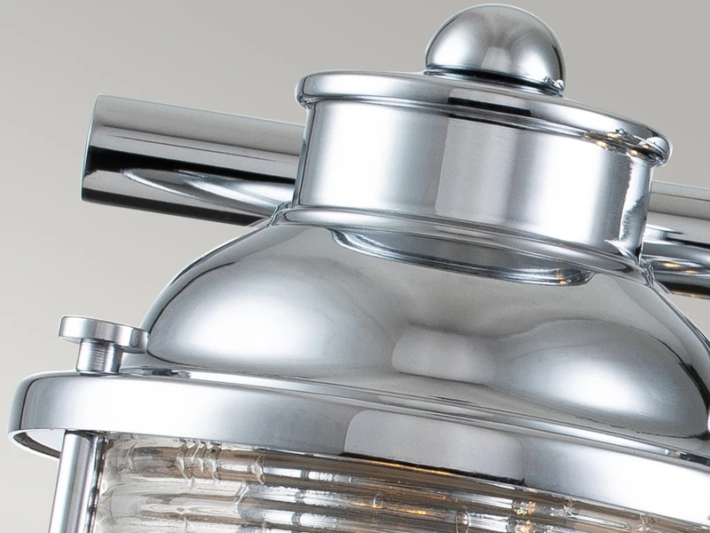 Langweilige Badbeleuchtung war gestern! Diese ausgefallene Innenleuchte im Industrial Style besticht durch ihr ausgefallenes Design und ihre hochwertige Verarbeitung. Der Korpus der Leuchte besteht aus chrom farbigem Stahl, der Lampenschirm aus strukturiertem Glas.