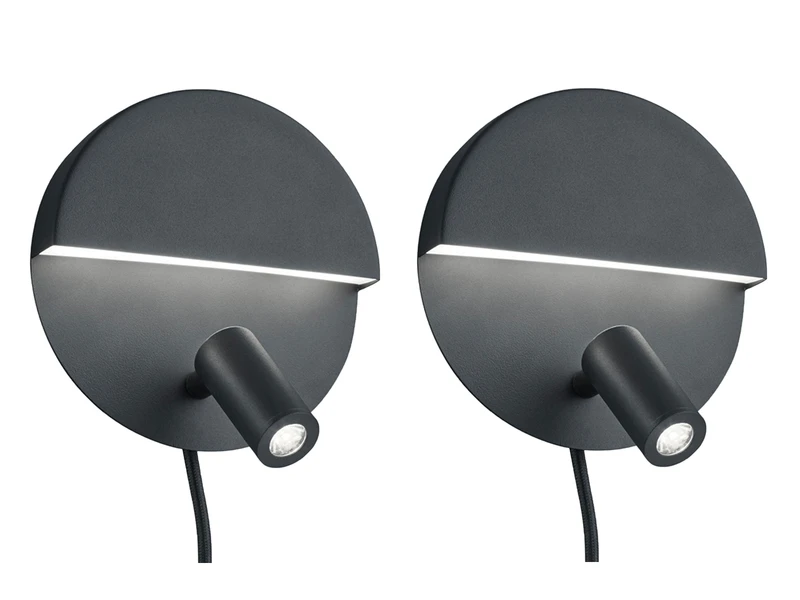 Die runden Leuchten haben einen Durchmesser von 16 cm und sind jeweils mit zwei Lichtquellen ausgestattet. Über zwei integrierte Schalter können diese getrennt voneinander geschaltet werden.