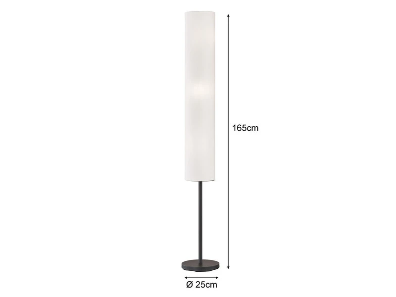 Diese Stehlampe kommt in klassischen Farben daher und verstrahlt dennoch eine moderne Eleganz. Mit ihrem matt schwarzen Leuchtenfuß aus Metall und dem weißen Lampenschirm aus Leinenstoff (innen PVC) ist die insgesamt 165cm große Stehlampe ein schöner Blickfang in jedem Wohnraum.