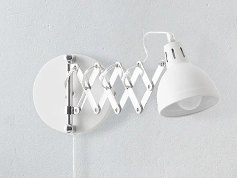 Der schicke Schirm in Weiß matt aus Metall ist ganz im angesagten Industrie Look gehalten. Er verleiht der Leuchte mit Scherenarm ihren ganz eigenen Charakter. Die Innenseite des Schirms mit einem Durchmesser von 11cm ist in weiß lackiert und komplettiert das einzigartige Erscheinungsbild der Leseleuchte.