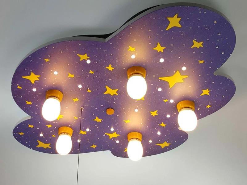 Diese tolle Kinderlampe bietet ausreichend Licht zum Spielen oder Lernen. Wenn es für die Kleinen dann Zeit wird schlafen zu gehen, lässt sich die Hauptbeleuchtung der Kinder Deckenlampe ausschalten und es leuchten nur noch die kleinen LED’s. Hübsch angeordnet zwischen den vielen Sternen laden sie kleine und grosse Kinder zum Träumen ein.