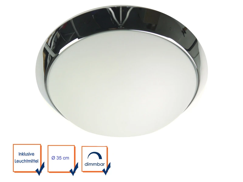 Mit einem Durchmesser von 35cm und einer Höhe von 12cm eignet sich die Glasleuchte optimal für die Beleuchtung von Fluren, Dielen und Kellern. Die Deckenleuchte leistet jedoch auch in Treppenhäusern, Garagen und Aufgängen zuverlässige Dienste. Diese weiße Leuchte ist ebenso hervorragend geeignet für den Einsatz in Aufenthaltsräumen, Empfangshallen oder Sanitärbereichen.