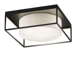 Fischer & Honsel Deckenleuchte CARRE Eckig 70x70cm Groß Mit Leinen Stoffschirm Beige