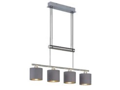 Trio Leuchten 4 Flammige Balken Pendelleuchte GARDA Mit Stoffschirmen Taupe – Höhenverstellbar