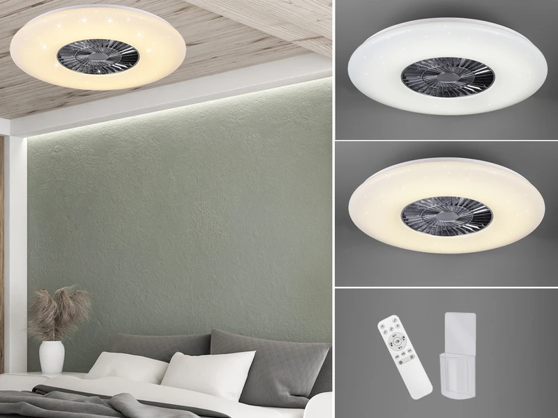 Die Deckenleuchte ist mit einem Ventilator ausgestattet und schafft an heißen Tagen eine angenehme Abkühlung in Ihren Räumen.