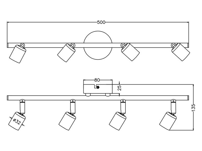 Die Deckenbeleuchtung ist mit vier GU10 Fassungen ausgestattet und für Leuchtmittel max. 35 Watt geeignet (nicht enthalten).