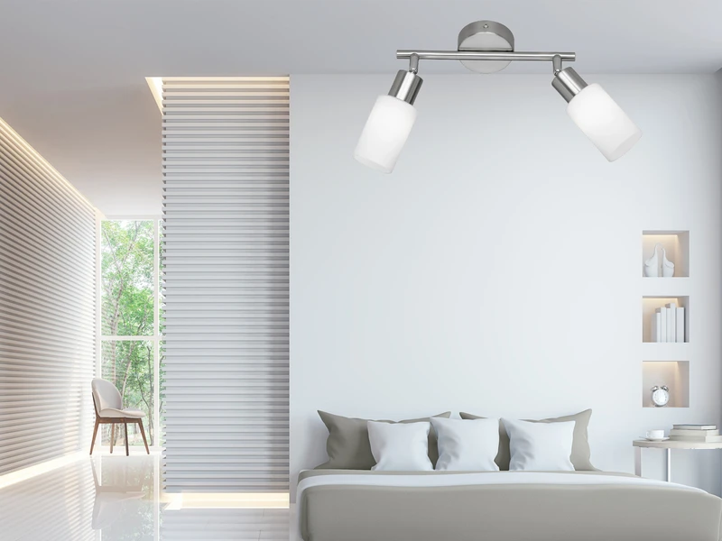 Die LED Lampe ist mit zwei E14 Fassungen ausgestattet und wird inklusive 2 dimmbaren LED Leuchtmitteln a´5 Watt, 400 Lumen & 3000 Kelvin in warmweiß geliefert. Sie können die LED Leuchte über Ihre Hausinstallation dimmen und so zusätzlich für eine ganz individuelle Beleuchtung sorgen.