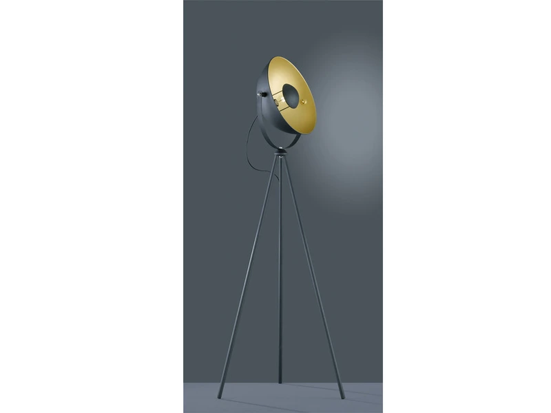 Mit der modernen Farbkombination trifft die Retro Stehleuchte den aktuellen Interior-Trend. Der Lampenschirm der sonst schwarz matten Leuchte ist innen goldfarbig und liegt damit nicht nur im Trend, sondern versprüht Eleganz und Wärme. Durch die mittlere, schwarze Abdeckung, hinter der das Leuchtmittel platziert wird, entsteht ein faszinierendes, indirektes Licht, welches der Stehlampe ihren unverwechselbaren Charakter verleiht.