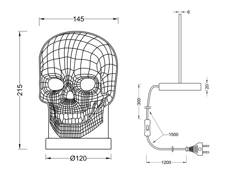 Die Tischleuchte SKULL im Totenkopf Design sollte prominent im Interior platziert werden, da sie ein- und ausgeschaltet ein Highlight darstellt.