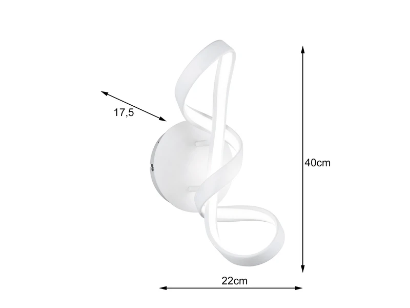 Die Farbgestaltung in Weiss matt ist absolut zeitlos und lässt sich in zahlreichen Einrichtungsstilen wunderbar ergänzen. Die coole LED Leuchte hat eine Höhe von 40cm, ist 22cm breit, mit einer Ausladung von 17,5cm.