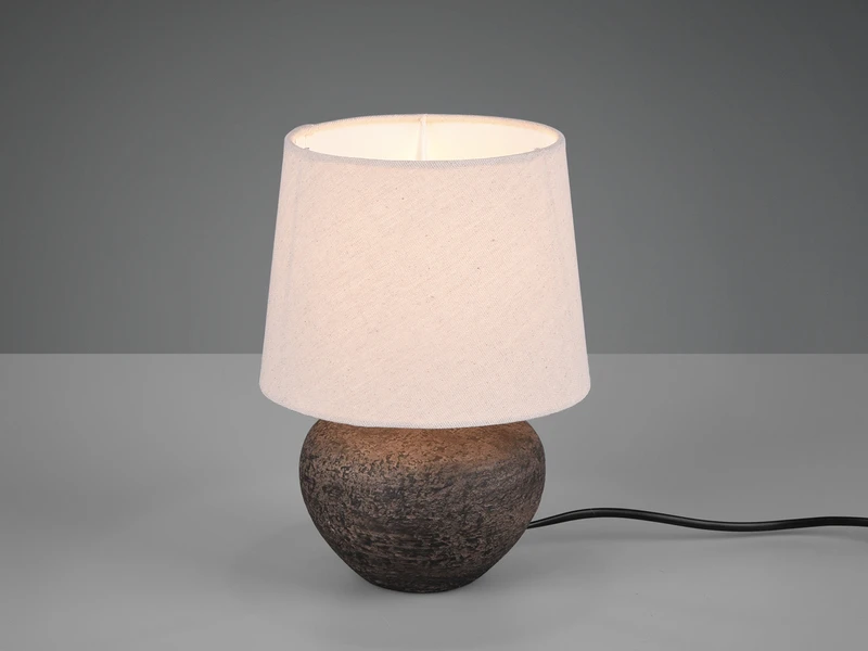 Durch die schlichte Farbgebung in Beige und Braun, harmoniert die Tischleuchte ideal mit sanften Farben und natürlichen Einrichtungskonzepten.