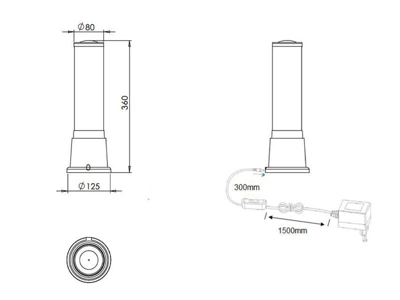 Die Wassersäule hat eine Höhe von 36cm sowie einen Durchmesser von 12,5cm. Die klare Wassersäule sitzt auf einem titanfarbenen Fuß aus Kunststoff, so dass Farben und Bewegungen bestmöglich wiedergegeben werden können.