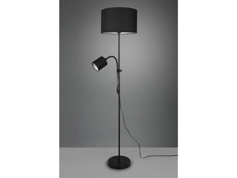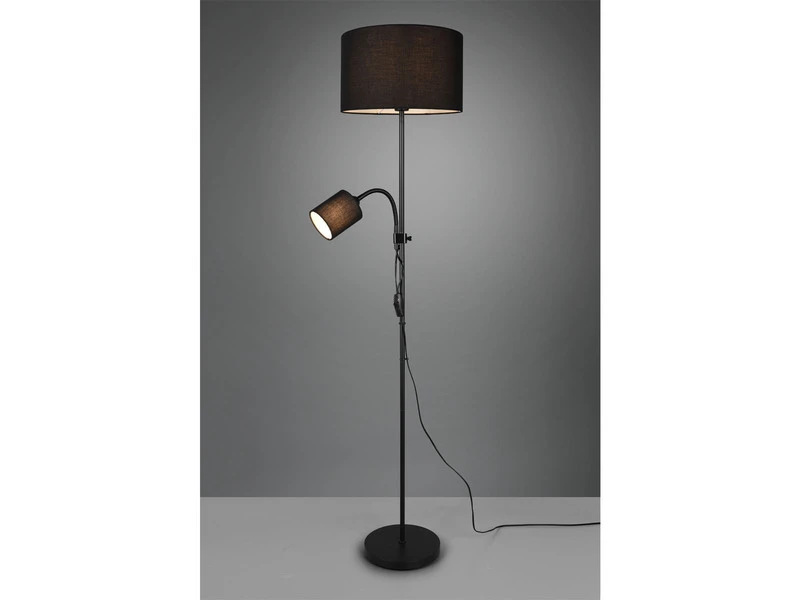 Einmal richtig in Szene gesetzt, wird die Standleuchte eine geschmackvolle Ergänzung für nahezu jedes Interieur und kann daher perfekt im Wohn- oder Eingangsbereich platziert werden. Der Korpus aus Metall in Schwarz kombiniert mit den runden Stofflampenschirmen in Schwarz verleiht der insgesamt 160cm hohen Standlampe einen eleganten Charakter.