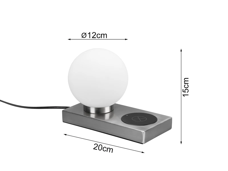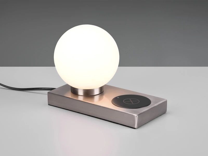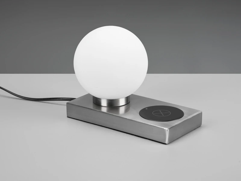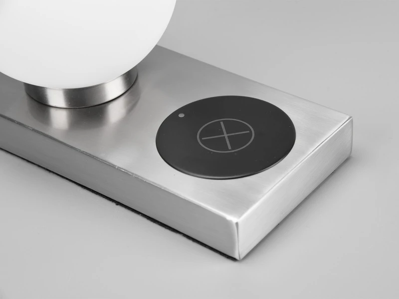 Die ON/OFF Touchfunktion garantiert eine benutzerfreundliche Bedienung. Als Zusatzfunktion verfügt die Leuchte über eine induktive Ladestation. So können geeignete Smartphones problemlos durch einfaches Auflegen geladen werden.