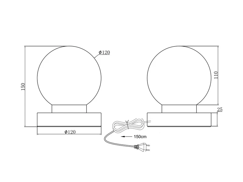 Die Kugellampe ist mit einer E14 Fassung ausgestattet und für Leuchtmittel bis max. 40 Watt geeignet (nicht enthalten).