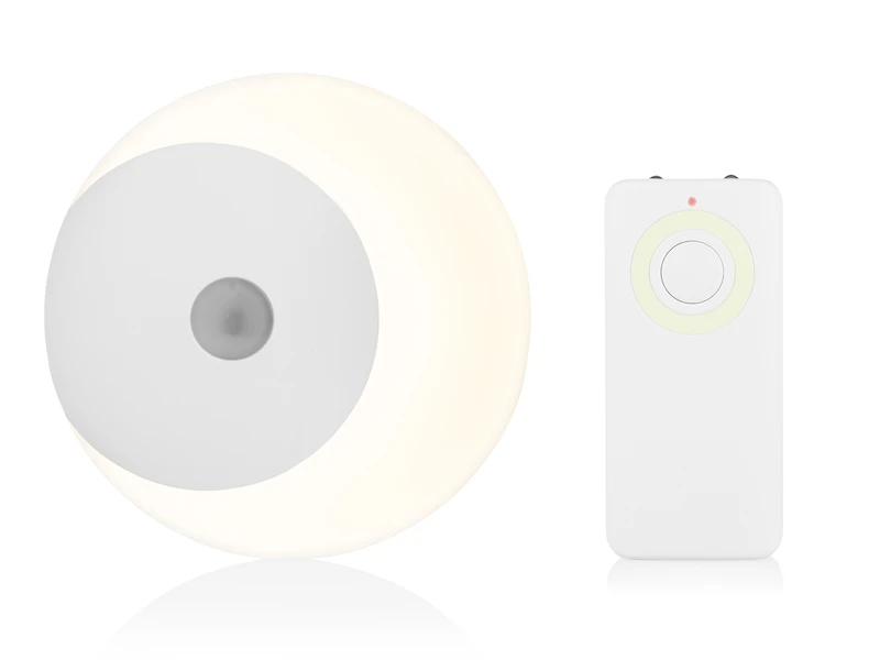 Das Orientierungslicht hat zwei Leistungsstufen: 20 % und 100 %. So können Sie die gewünschte Helligkeit wählen. Die Leuchte kann mit der Fernbedienung oder durch Betätigen der entsprechenden Taste gedimmt werden. Außerdem können Sie einen Timer einstellen, damit sich die Leuchte nach 10 Minuten automatisch ausschaltet.