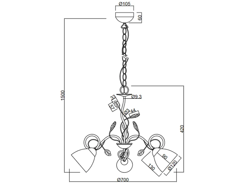 Die Hängeleuchte ist mit drei E14 Fassungen ausgestattet und ist für Leuchtmittel mit einer Leistung von jeweils 40 Watt geeignet. Diese sind nicht im Lieferumfang mit enthalten. Bei Einbau eines geeigneten Leuchtmittels und eines Wanddimmers können Sie die Hängelampe über Ihre Hausinstallation dimmen und so zusätzlich für eine ganz individuelle Beleuchtung sorgen.