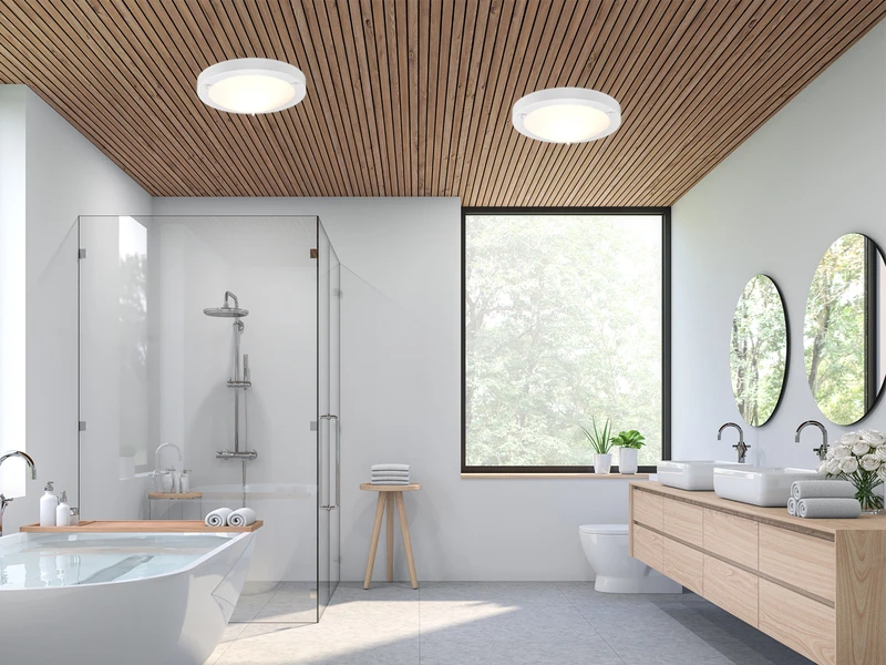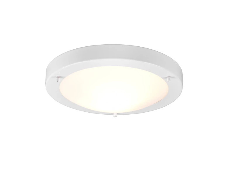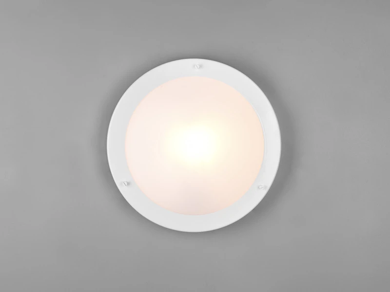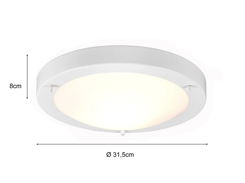 Dank Schutzart IP44 ist die Lampe gegen Spritzwasser geschützt und damit perfekt für alle Feuchträume, wie Badezimmer und Gäste WC geeignet. Die Kombination aus Metall in Weiß und Opal weiß mattem Glas passt in jeden Wohnbereich. Dabei hat die Lampe einen Durchmesser von 31,5 cm sowie eine Höhe von nur 8 cm.