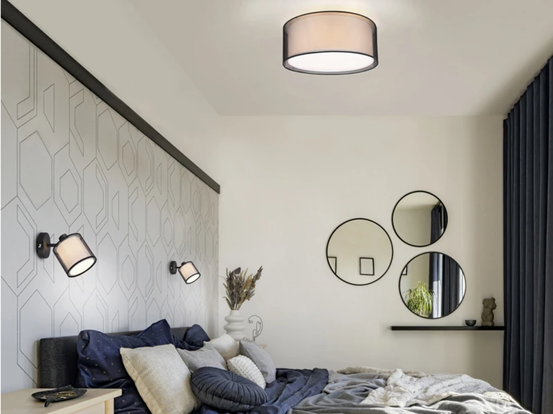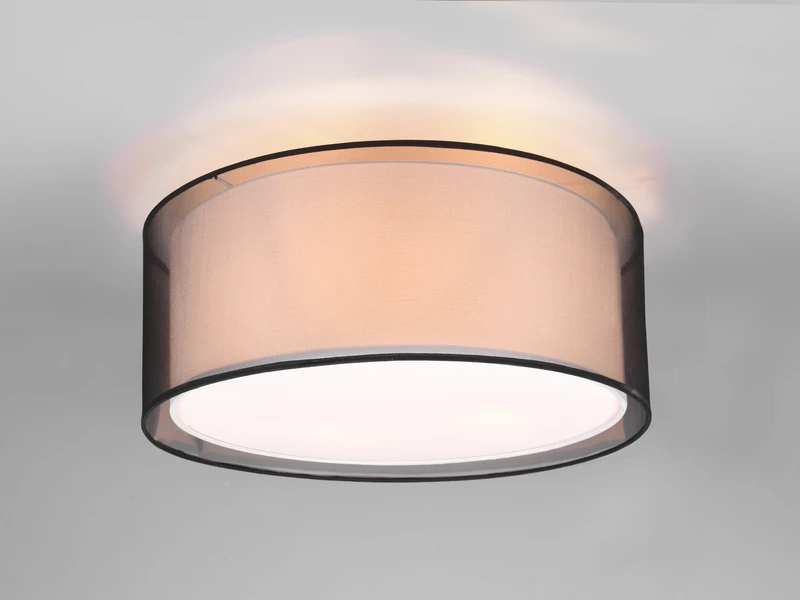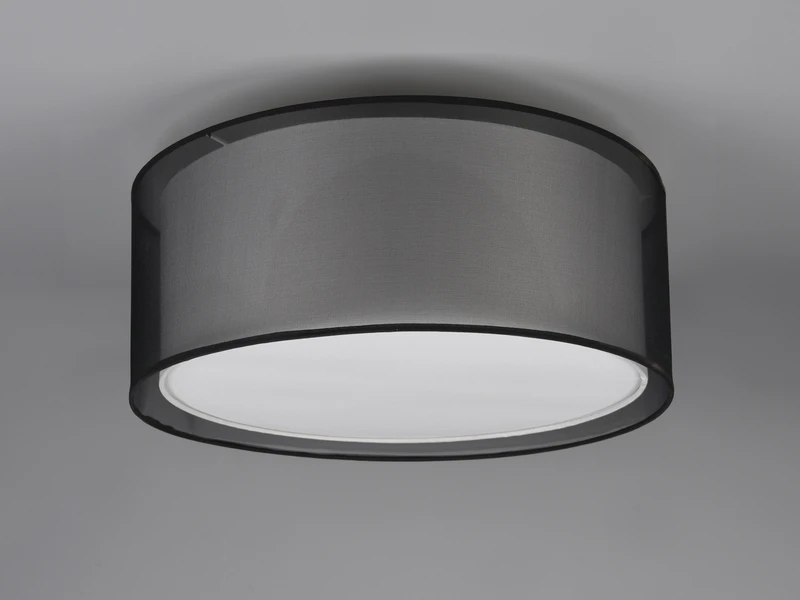 Die Leuchten der Serie BURTON sind mit ihren Textilschirmen der Inbegriff für Behaglichkeit. Das wohnliche Licht der Deckenleuchte, welches durch die beiden verschiedenfarbigen Schirme ein gemütliches Ambiente zaubert, setzt besondere Lichtakzente. Die moderne Kombination aus einem inneren weißen Stoffschirm und einem äußeren transparent schwarzen Organza Stoffschirm wirkt individuell sowie erfrischend und lässt sich vielfältig in moderne Wohnstile integrieren.