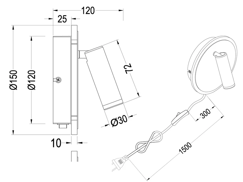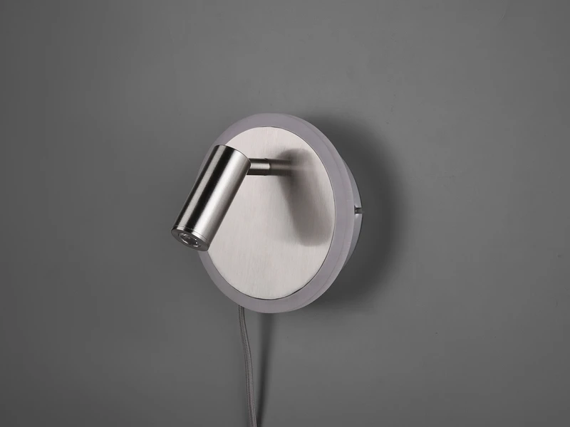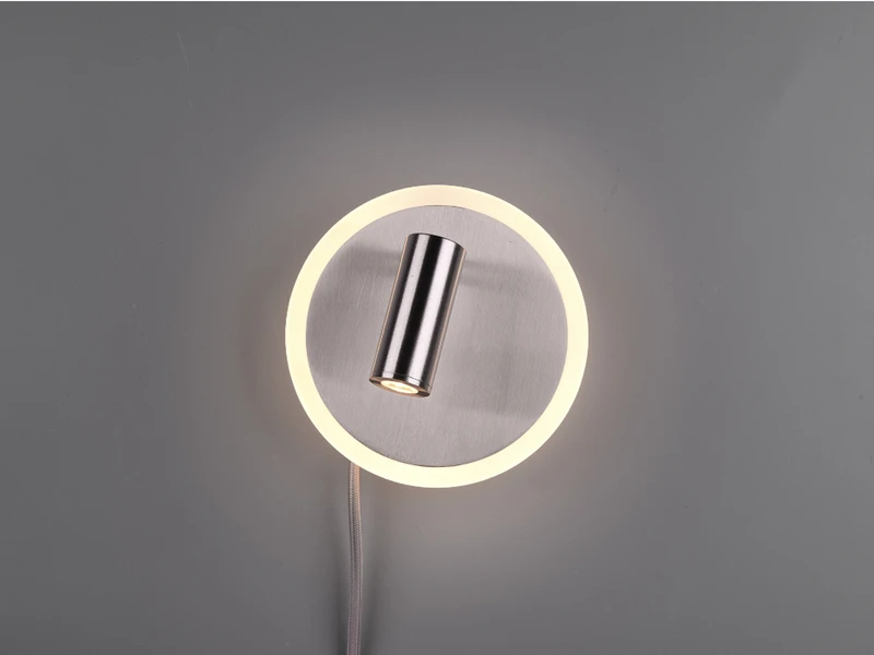 Die Leseleuchte ist über ihr Gelenk drehbar und schwenkbar, so können Sie ganz nach Ihrem Bedarf die Lichtausrichtung individuell einstellen. An der Blende des Sockels befinden sich eine weitere rund umlaufende LED für eine dezente indirekte Beleuchtung. Die Lichtquellen können über mehrfaches schalten des Schnurschalters oder des integrierten Schalters getrennt voneinander bedient werden.