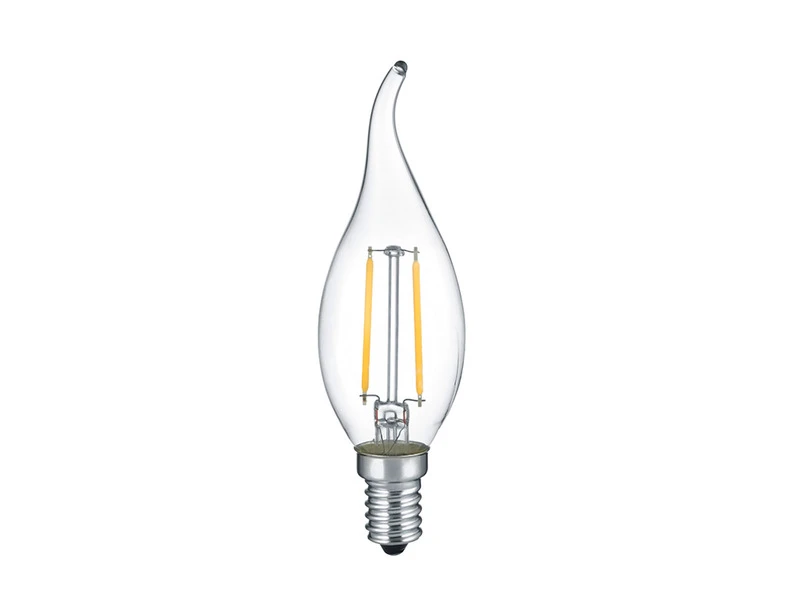 Dieses Filament LED in Flammenform hat eine Leistung von 2 Watt, 250 Lumen, und verbreitet mit 2700 Kelvin ein warmweißes Licht. Mit seiner langen Lebensdauer ist es um ein vielfaches sparsamer als ein herkömmliches Leuchtmittel.