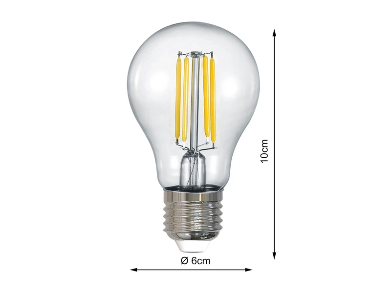 Das Leuchtmittel hat einen Durchmesser von ca. 6cm, eine Höhe von 10cm, und ist passend für alle Leuchten mit einer E27 Fassung. Ausgestattet mit Switch Dimmer – über den herkömmlichen Wandschalter kann das Leuchtmittel in drei verschiedene warmweiß Lichtfarben (2200+2700+3000 Kelvin) geschaltet werden.