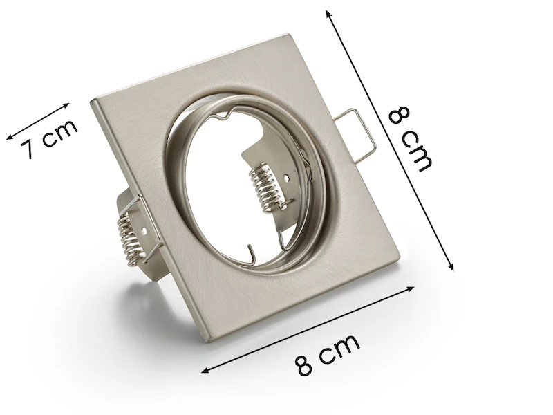 Gefertigt ist die Deckenlampe aus Nickel mattem Metall. Der Spot hat eine Größe von 8 x 8 cm sowie eine Einbautiefe von 9 cm und lässt sich individuell ausrichten. Die Einbaulampe ist mit einer GU10 Fassung ausgestattet und für ein Leuchtmittel bis max 15 Watt geeignet.