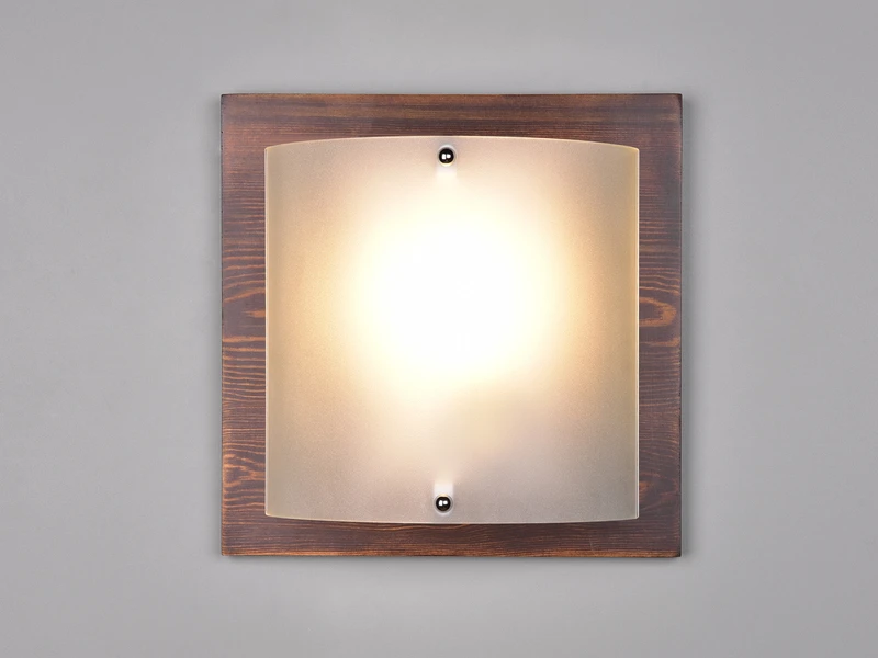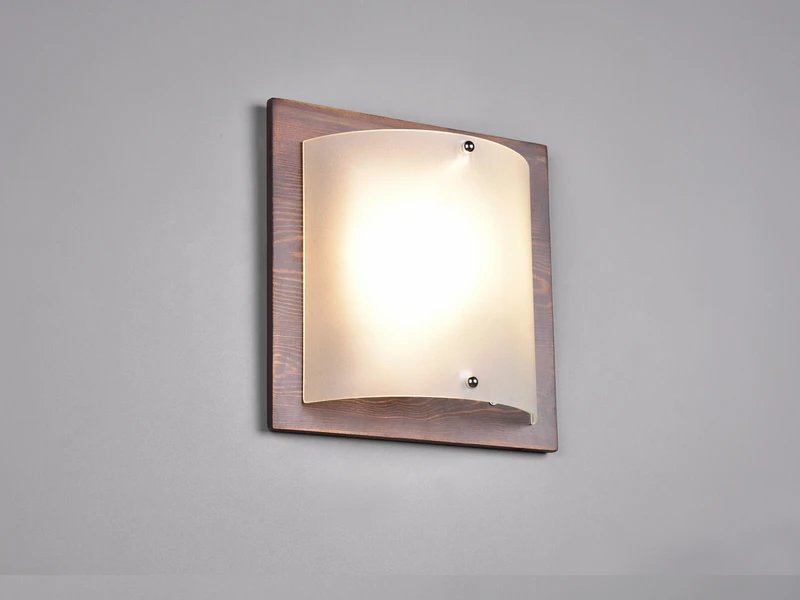 Mit dem stilvollen Materialmix aus Holz und Glas verleiht die Wandleuchte PALI Wohnräumen eine besondere Atmosphäre. Der Glasschirm aus weiß gewischtem Glas spendet ein besonders angenehmes Licht. Der Rahmen aus dunklem Holz rundet das zeitlose Design ansprechend ab.