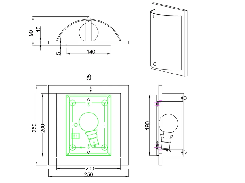 Das klassische Design wirkt zeitlos und somit ist die Wandlampe mit einer Größe von 25 x 25 cm und einer Ausladung von nur 9 cm perfekt geeignet für viele verschiedene Einrichtungskonzepte.