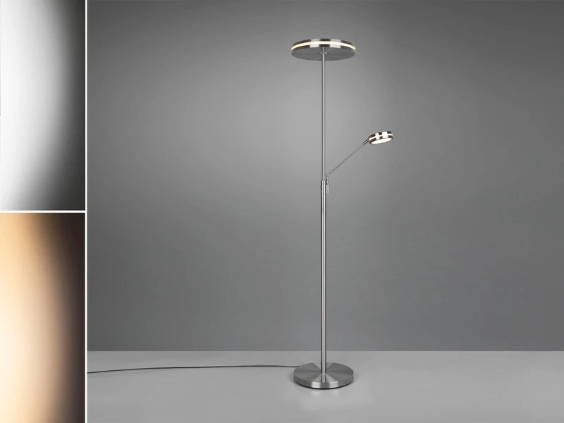 Die Leuchte verfügt zusätzlich über einen verstellbaren Lesearm, der sich getrennt von der Hauptlichtquelle schalten lässt und für die passende Beleuchtung beim Lesen oder Handarbeiten sorgt.