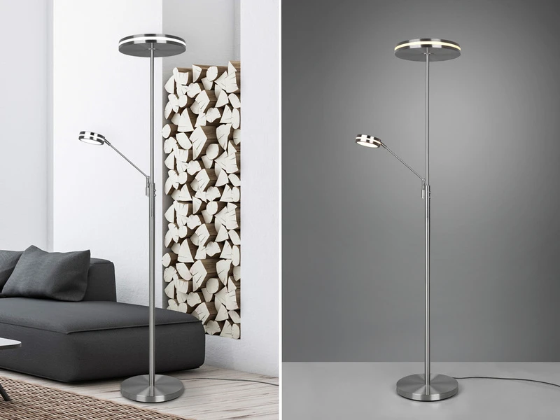 Neben dem Sofa oder in einer gemütlichen Leseecke platziert sorgt die stufenlos dimmbare Standlampe für ein angenehmes Lichtambiente.