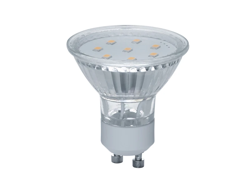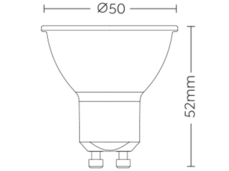 Dieser GU10 LED Reflektor hat eine Leistung von 4,5 Watt, 345 Lumen und 3000 Kelvin in Warmweiß. Dank einer extrem langen Lebensdauer von ca. 25.000 Stunden ist es um ein vielfaches sparsamer als ein herkömmliches Leuchtmittel. Der Sockel ist passend für alle Leuchten mit einem GU10 Stift Sockel. Das Leuchtmittel ist 5cm hoch und hat einen Durchmesser von 5cm. Über einen herkömmlichen Lichtschalter lässt sich der Reflektor in drei Helligkeitsstufen schalten.