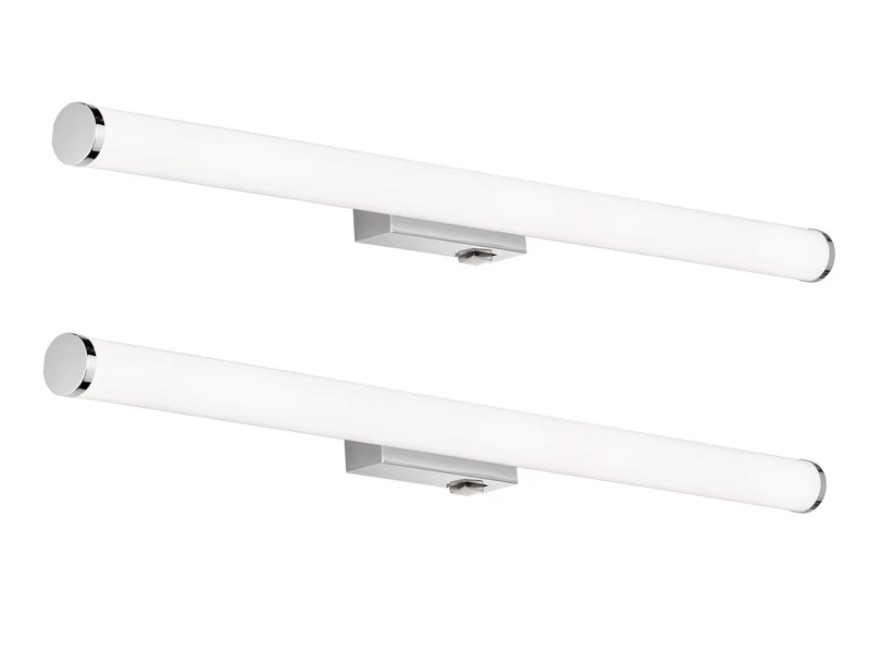 Jede Wandlampe ist mit einem fest verbauten LED Modul ausgestattet, welches mit einer Leistung von 8,6 Watt und 880 Lumen in Warmweiß für eine schöne Beleuchtung sorgt. Zusätzlich ist die Badezimmerlampe mit einem Ein / Aus Schalter ausgestattet.