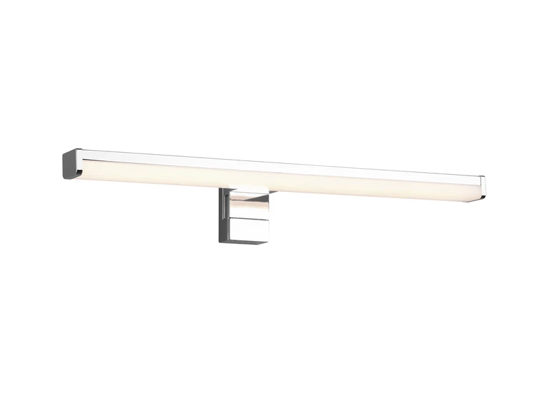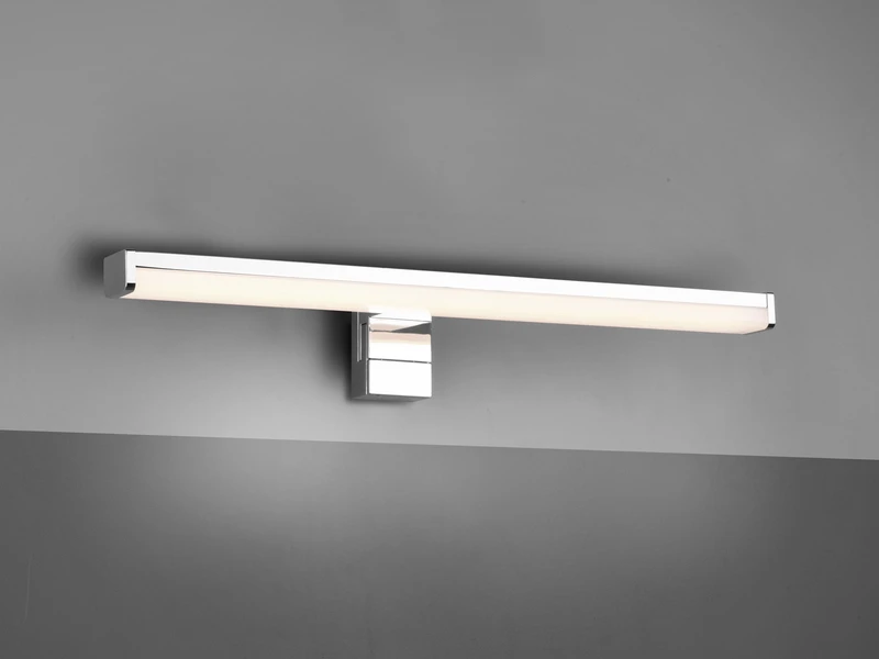 Der Chrom glänzende Korpus verleiht der Badezimmer Lampe eine exklusive Optik. Mit einer Breite von 40 cm und einer Ausladung von 10,5 cm ist sie auch für kleinere Bäder gut geeignet und überzeugt durch ihr effektives, aber dennoch blendfreies Licht.