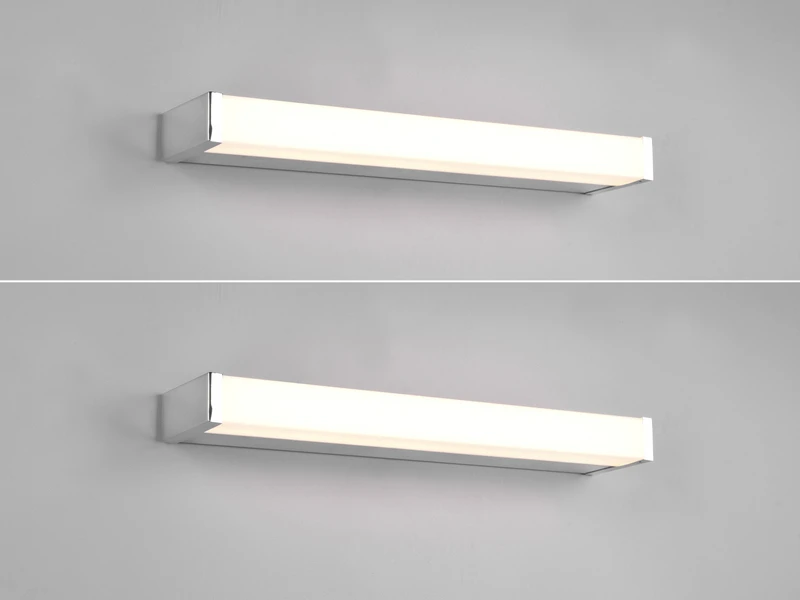 Der Silber Chrom Korpus verleiht der Badezimmer Lampe eine exklusive Optik. Mit einer Breite von 42,5 cm und einer Ausladung von 7,9cm ist sie auch für kleine Bäder gut geeignet und überzeugt durch effektives, aber dennoch blendfreies Licht.
